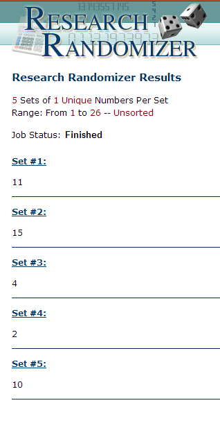 Après tirage au sort, réalisés par un randomizer, les numéros gagnants sont :